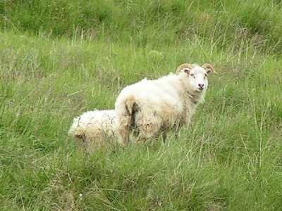 Islandpferde, ich denke man kann auch sagen der Stolz der Isländer. Sie sind etwas kleiner als ihre europäischen Verwandten aber dafür sehr ausdauernd und gutmütig. Ohne Vorübung und Erfahrung haben wir einen gemächlichen Ausritt von über einer Stunde unternommen. Dazu kommt, dass die Islandpferde einen fünften Gang besitzen, eine Gangart die nur sie beherrschen und bei der nur immer ein Huf am Boden ist. Wir haben uns dabei wie auf einer Rüttelplatte gefühlt. Das nächste Getier sind die Schafen, sie werden im Frühjahr in die Berge getrieben und im Herbst wieder eingesammelt. Da es hier keinerlei Raubtiere gibt, besteht für sie in dieser Hinsicht kein Risiko.